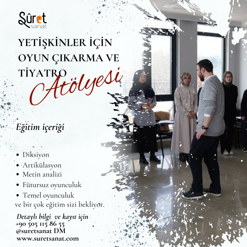Atölyemiz bünyesinde verilen eğitimlerden biri de genç ve yetişkinlere dönük olarak verilen Temel Oyunculuk Eğitimidir. Bu eğitim kapsamında atölyemize başvuran kişiler ile talepleri doğrultusunda en az 10 en fazla 20 saat olacak şekilde bir eğitim takvimi çıkarılır. Takvimde eğitimi alacak kişinin zaman uygunluğu öncelenir. Talep üzerine yapılan program ve takvim sonrası ücretlendirme yapılır ve kabul edilmesi halinde eğitimler belirlenen takvimlerde başlar. Eğitimlerimiz gruplar halinde de yapılabilmektedir. Grup halinde yapılan başvuruların eğitim ücretlerinde indirim tarifesi uygulanmaktadır. Eğitimlerimiz yalnızca oyunculuk yapmayı düşünen adayların değil farklı meslek gruplarında bulunan kişilere de hitap etmektedir. (Hukukçu, Eğitimci gibi)